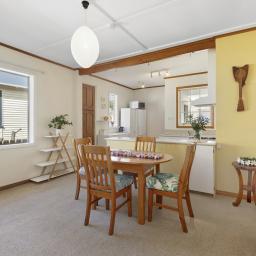 Step inside to a bright, welcoming, sunny lounge complete with wood burner - an inviting space for relaxation or entertaining guests. A door leads through to an open plan kitchen and spacious dining area, with a gas heater. The HRV system throughout the home is an added bonus to help keep away the winter chills.