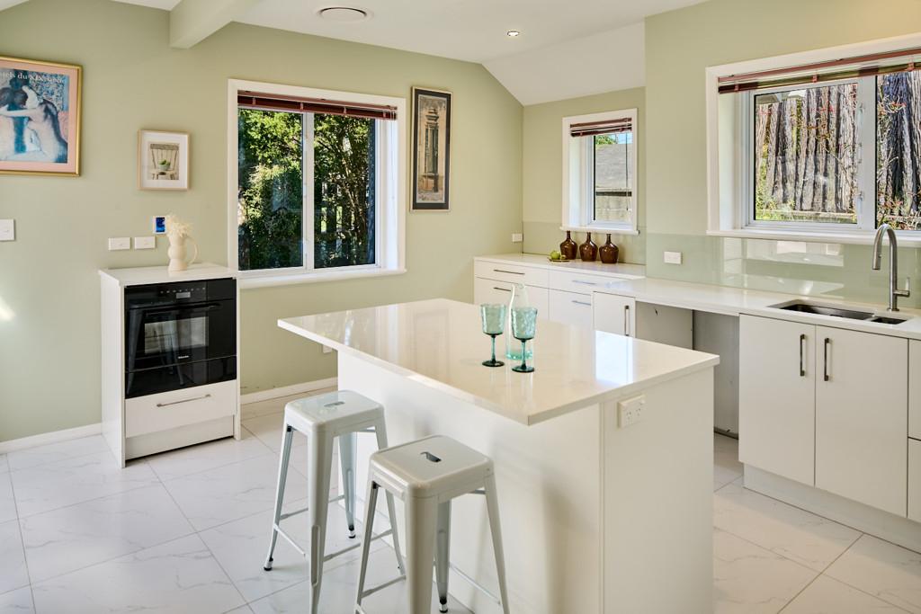 Well presented throughout, the standout kitchen will impress any cook or entertainer. Featuring quality Miele appliances, marble benchtops, and tiled flooring, and opens up to a covered patio - perfect for relaxed weekend lunches, or drinks with family and friends. The separate living room, complete with a woodburner, provides winter warmth while overlooking the lush rear garden. There are two double bedrooms off the hallway, plus a third room off the living area - ideal as a home office, nursery, or guest space.