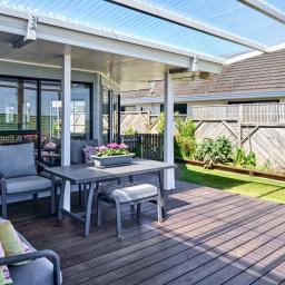 The owners have undertaken several tasteful upgrades to enhance the home's comfort and outdoor living. A real highlight is the generous west-facing deck, complete with a permanent pergola shelter. This attractive and sheltered space is ideal for alfresco dining, summer barbecues, or simply relaxing with a coffee while enjoying the afternoon sun. Set on a tidy, easy-care section, the property is designed for those who appreciate a low-maintenance lifestyle. The fully fenced garden offers privacy and security while providing a safe area for children or pets to play. Established vegetable beds add a practical and rewarding touch..