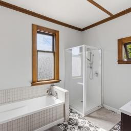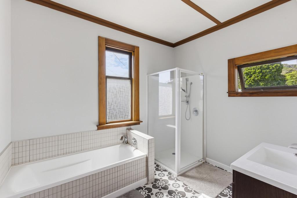 The bathroom is well appointed, and the home also includes the added convenience of a separate toilet and a separate laundry.