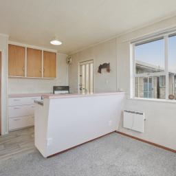 Inside, the home is filled with natural light. The kitchen with dish-drawer, stainless bench and external access is functional for everyday living, while the adjacent spacious living room with heat-pump is a comfortable space to relax, and can be closed off from the kitchen/dining area via sliding doors for privacy. Bedrooms are well-sized with double wardrobes, and the tidy bathroom presents a great opportunity to modernise and add future value. Benefits include a separate laundry and separate toilet.