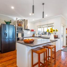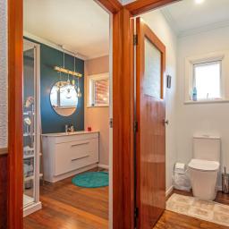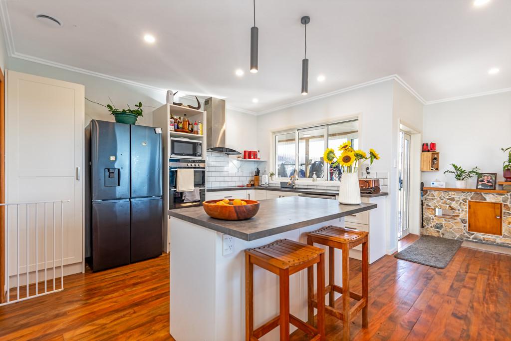Adding real flexibility, the former garage has been converted to create a highly adaptable space suitable for a hobby room, studio, or teenager's retreat. It includes a practical preparation area with a dark stone-look benchtop and island, additional washroom facilities with a glass-enclosed shower and a separate built-in bathtub, and excellent built-in storage and wardrobe systems. Resource consent has been approved for the bathroom features connected to the original septic tank, however building consent has not yet been issued.
