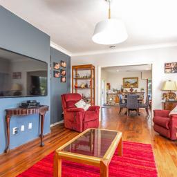 Four generous double bedrooms extend from the wide entrance hall, serviced by a modernised central bathroom and separate toilet. In addition, there is an office which provides an ideal work-from-home space or single bedroom, a rather large laundry, and the home is fully rewired and insulated top and bottom.