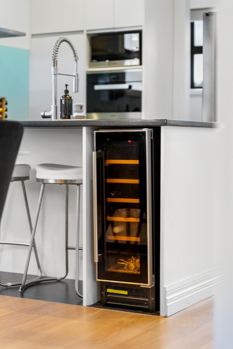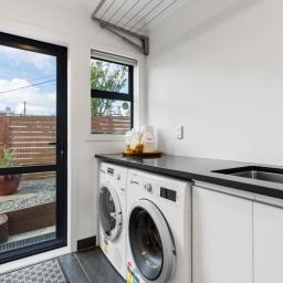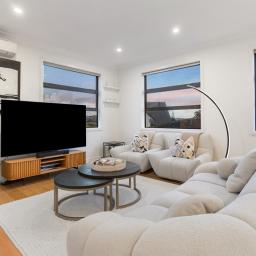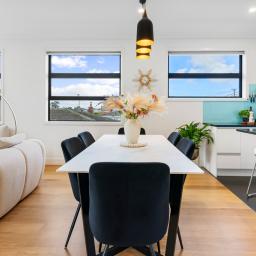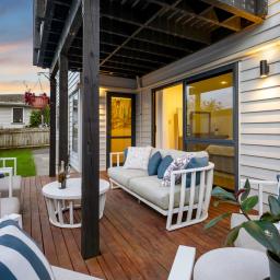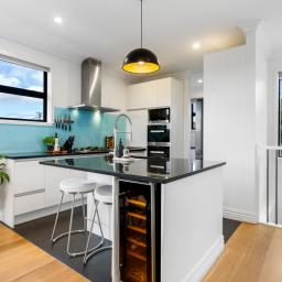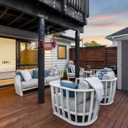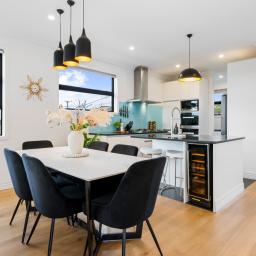 Built in 2015 to an exceptionally high standard, every detail here speaks of quality. The rich American Oak flooring sets the tone, flowing through a newly opened-up living, kitchen, and dining area that's become the true hub of the home. It's where friends gather around the island bench, wine fridge close at hand, and dinner is prepared with ease on Miele appliances -including a brand-new steam oven, still waiting to be used. On warm evenings, doors slide open to the deck perfect for summer BBQs with friends.