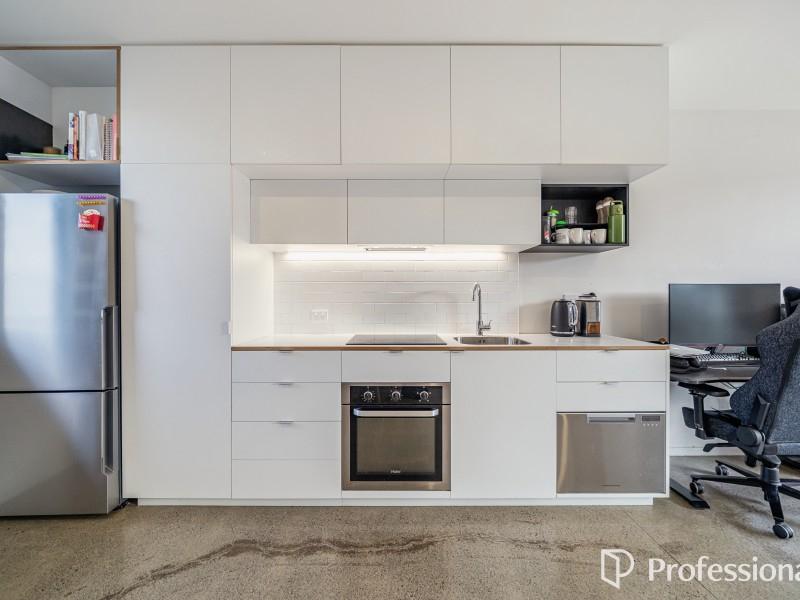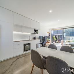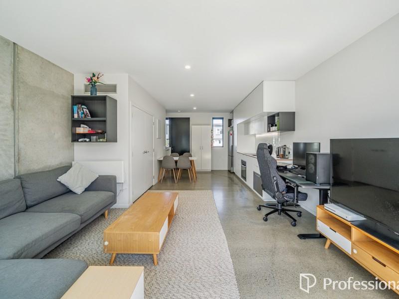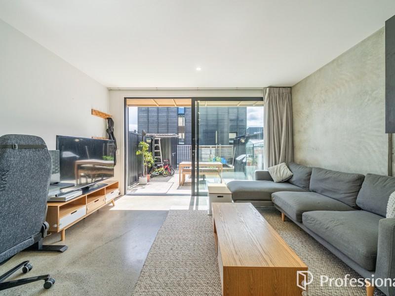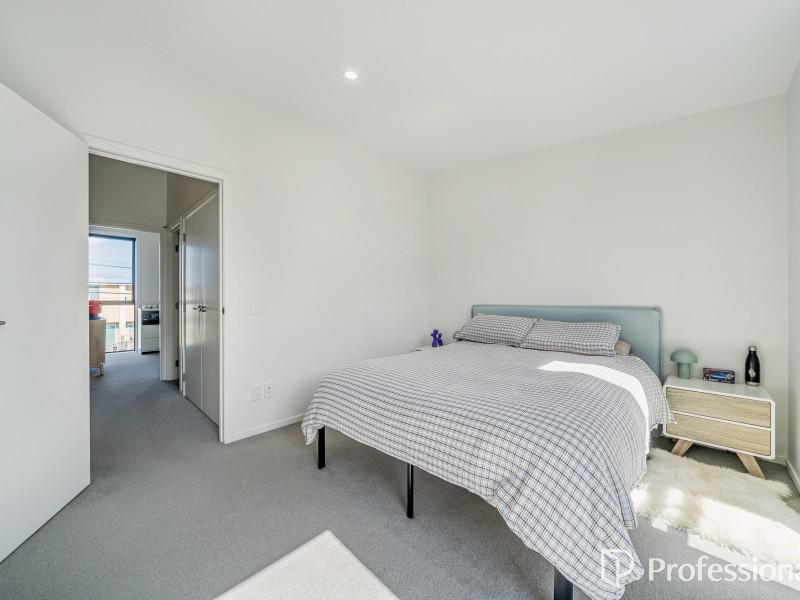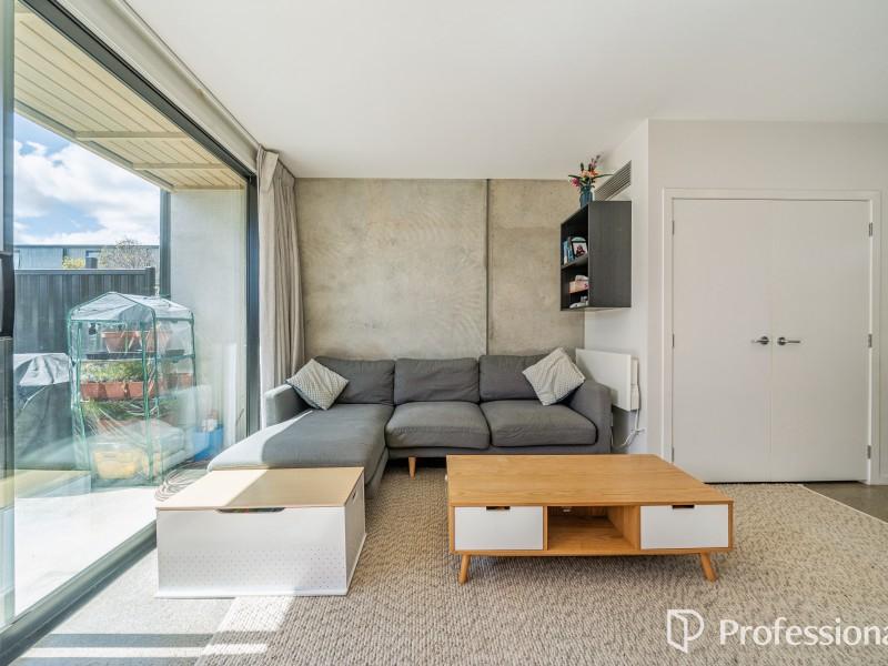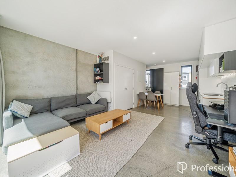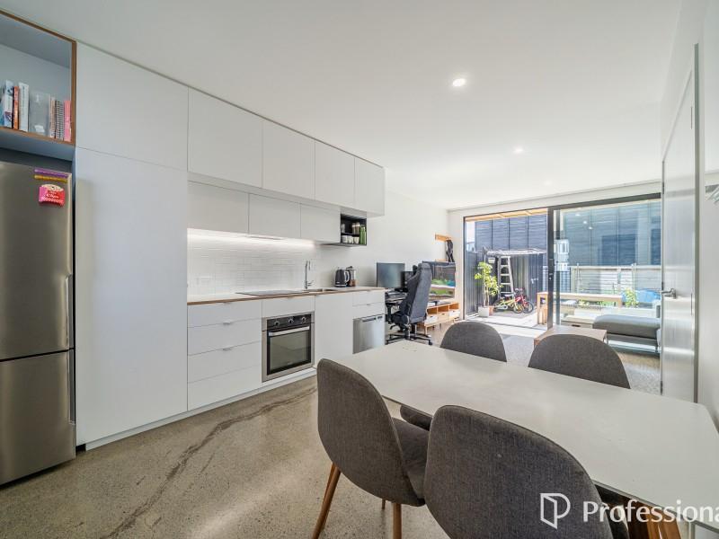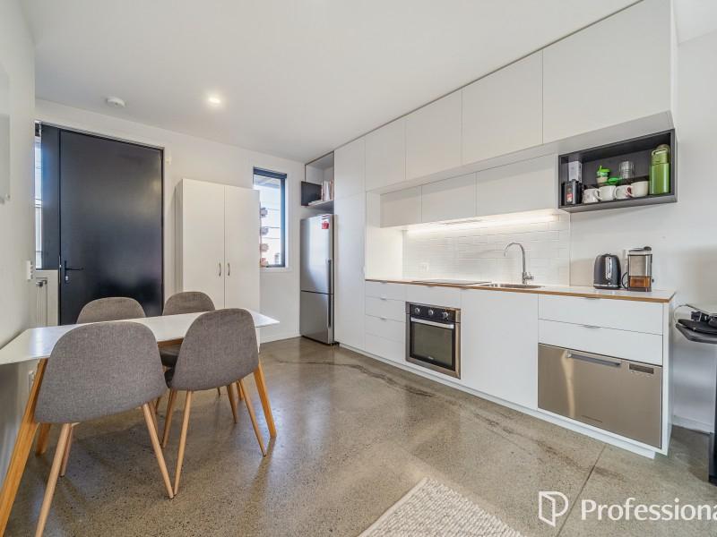 Downstairs is the open plan kitchen, living and dining area which features an exposed concrete floor that radiates passive heat, plus a hideaway laundry. Upstairs has two great sized bedrooms with ample wardrobe storage and a tidy convenient bathroom. This home is fully insulated, all exterior windows and doors are double-glazed. Heading outside you've got a north facing courtyard which is fully fenced with vege planter box and garden shed for additional storage. This home comes complete with an assigned off-street carpark.