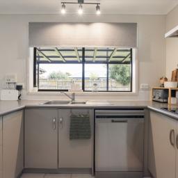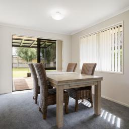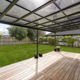 A standout feature is the large covered kwila deck, a sheltered outdoor space that works year-round and connects perfectly with the generous backyard.