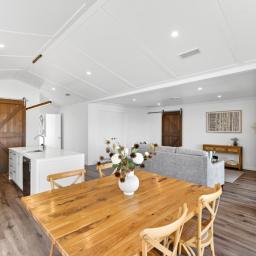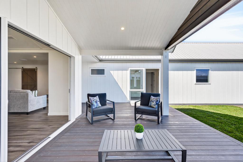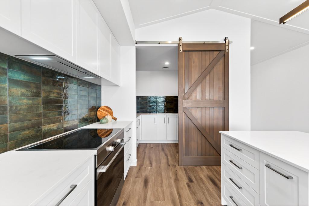 Step into the open-plan kitchen, dining, and living area where soaring ceilings enhance the sense of space and light. The kitchen, complete with a generous scullery, flows effortlessly to a covered deck overlooking the fully fenced section - an ideal setting for entertaining, al fresco dining, or quiet evenings. A second living room, also positioned off the main living hub, provides a space to unwind while remaining connected to the heart of the home.