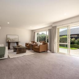 This exceptional home features generous living spaces, including a separate lounge and an open-plan living and dining area that flows through to a modern kitchen. Both living areas open out to a north-facing patio, overlooking a private lawn and garden setting – perfect for relaxing or entertaining while enjoying plenty of sunshine.