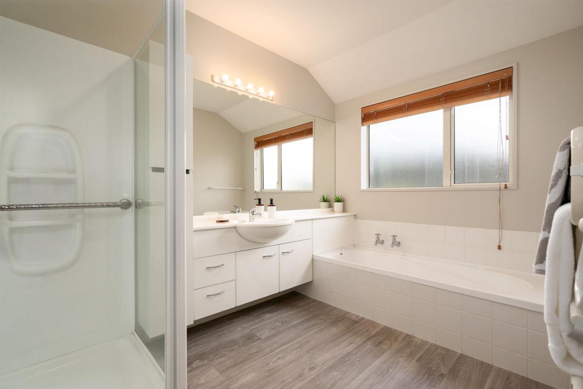 This well-presented property offers four bedrooms and two bathrooms, including a master ensuite with shower, vanity, and toilet. The main bathroom features a separate bath, shower, and vanity, providing comfort and practicality for family living.