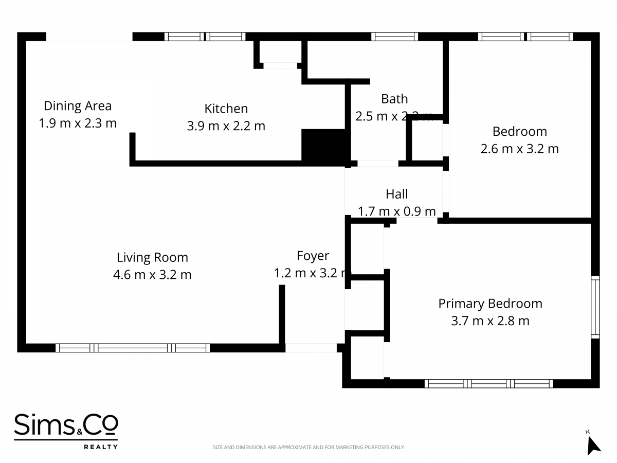 The home features two bedrooms, both serviced by a well-appointed family bathroom, offering practical and manageable living.