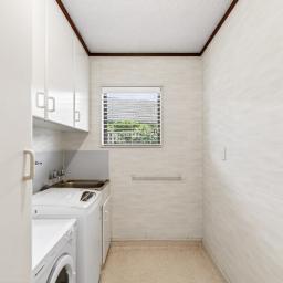 The spacious living room is complete with air conditioning and a wood burner, which flows seamlessly outdoors and through to the dining area. From there, enjoy a sunny sunroom and a well-equipped kitchen with a walk-in pantry.