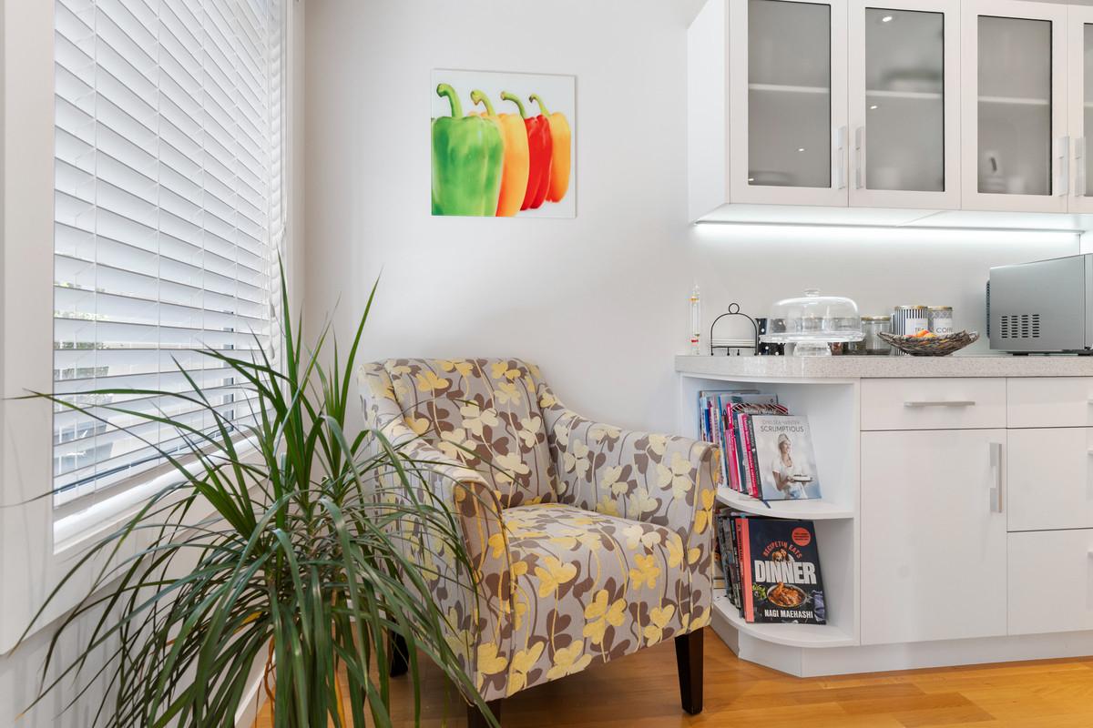 A separate lounge provides a cosy retreat for quieter moments.