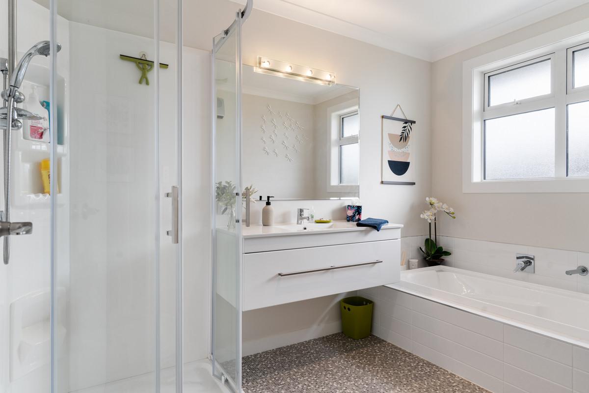 The home features three well-proportioned bedrooms and a family bathroom, plus a master bedroom, complete with walk-in robe, ensuite and stacker doors to the outdoor living space, offering a private haven at the end of the day. Comfort is assured with a ducted heat pump and double glazing, while a separate laundry adds practical convenience.