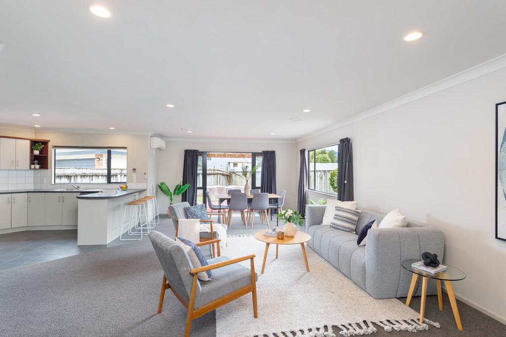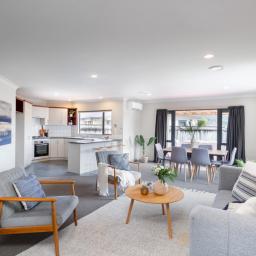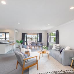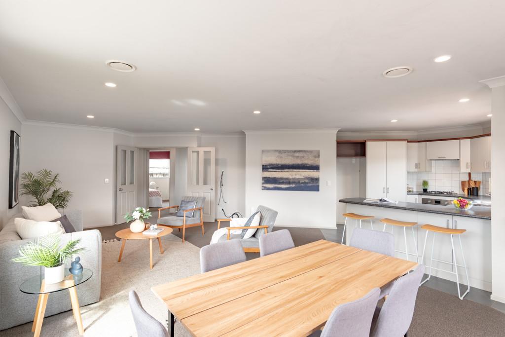 The open plan kitchen seamlessly connects with the dining and living areas, creating a spacious and inviting atmosphere. Ideal for entertaining, the residence boasts a delightful indoor/outdoor flow from both the living spaces and the master bedroom to the sun-drenched north-facing decked areas.