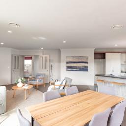 * Modern kitchen with open plan dining and living area