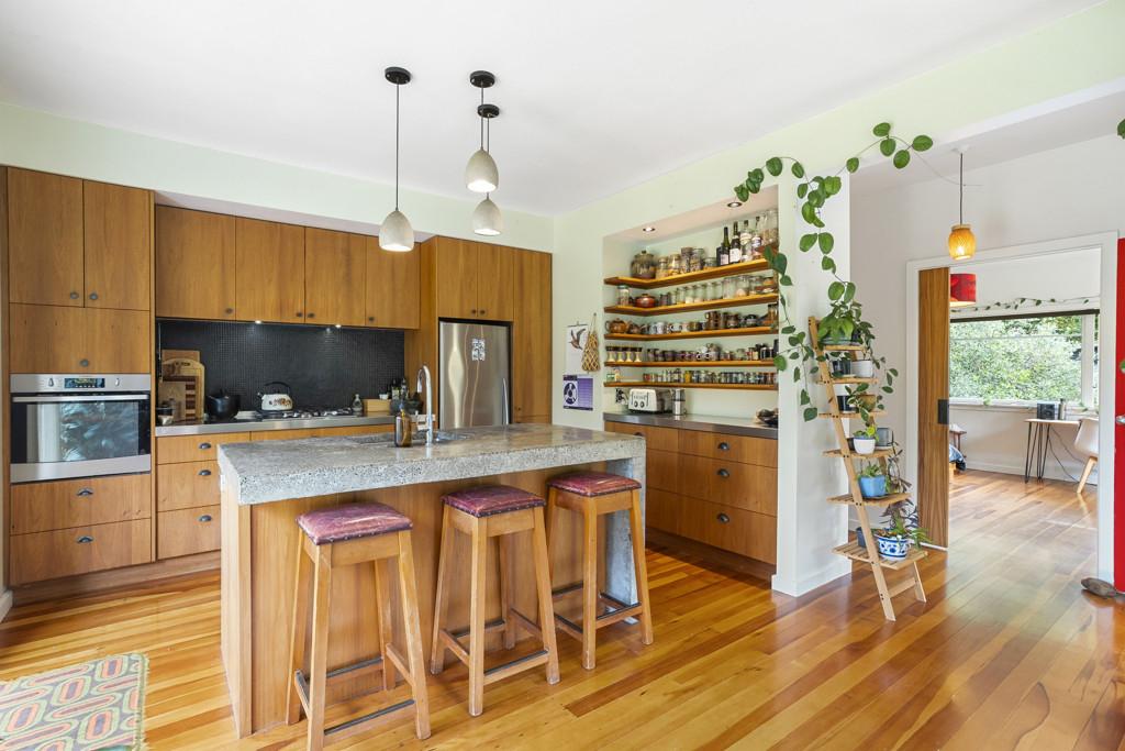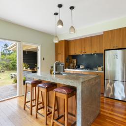 • A beautifully crafted kitchen at the heart of the home, featuring custom Australian Blackwood veneer cabinetry, premium Blum fittings, and durable brushed stainless steel and homemade concrete benchtops