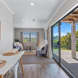 The main living spaces flow effortlessly in an open-plan design, allowing family life and entertaining to unfold naturally. Positioned to take advantage of its elevated setting, the home enjoys pleasant outlooks from a number of vantage points, creating a sense of space, light, and connection to the surrounding environment.
