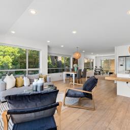 The heart of the home offers spacious living and dining areas, complemented by a modern kitchen designed for both functionality and style. Seamless indoor-outdoor flow creates the perfect setting for entertaining or relaxing with family.
