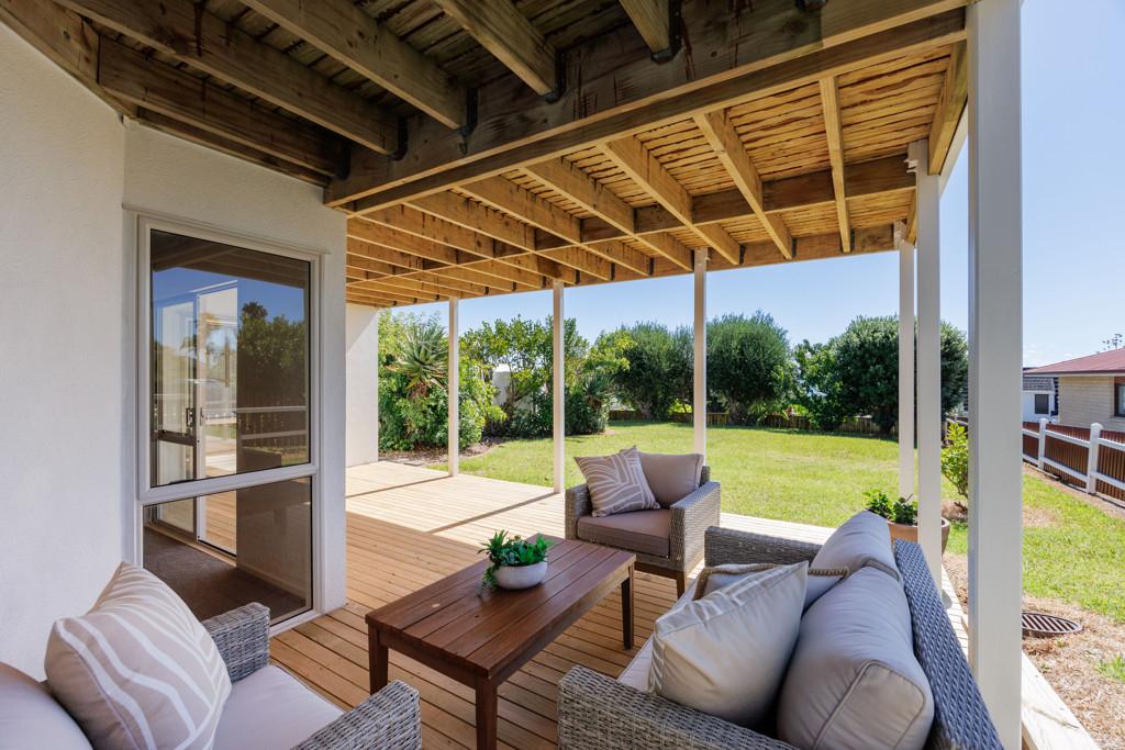 Enjoy the convenience of single-level living from the moment you enter through the double garage. The home features three generously sized bedrooms and two modern bathrooms, along with a bright, airy open-plan living area that flows seamlessly out to a large, sunny deck. This deck is perfectly positioned to capture breathtaking elevated sea views and bask in the north-facing sunlight all day long.