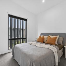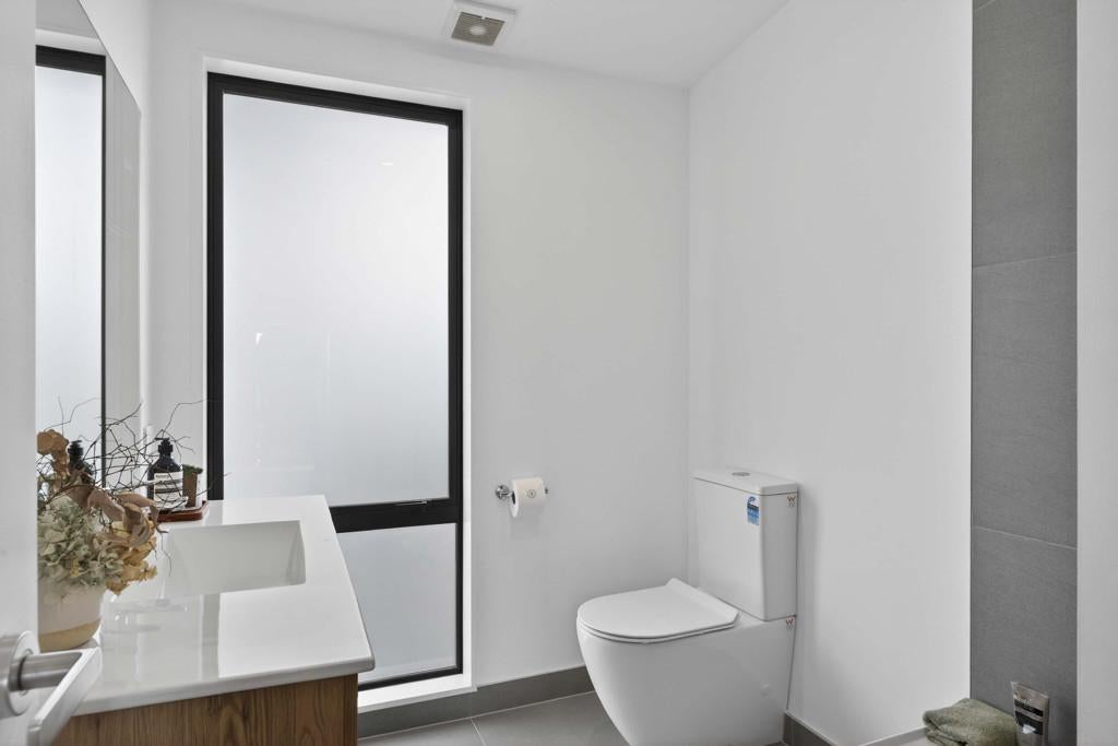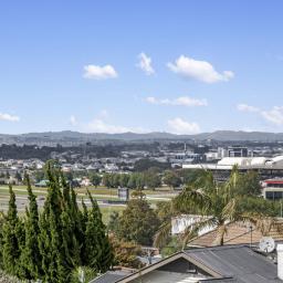Upstairs, accommodation is arranged with separation in mind. The main bedroom captures the outlook over Ellerslie Racecourse and beyond and includes its own ensuite with a walk-in robe, while two further bedrooms are serviced by a separate bathroom. A covered car park completes the home.