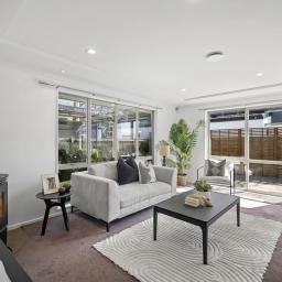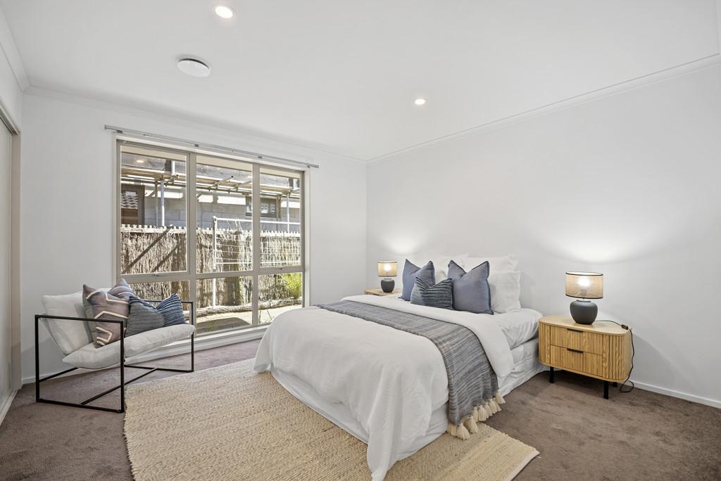 The well-appointed kitchen, with gas cooktop and ample storage, flows seamlessly into the spacious open-plan living and dining area, complete with a cozy fireplace. Sliding doors open to a private, low-maintenance yard and north-facing deck - perfect for entertaining or relaxing in the sun. Ample storage and an internal access double garage with laundry nook complete the home.
