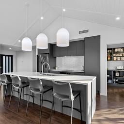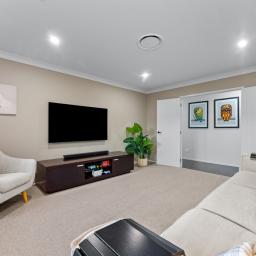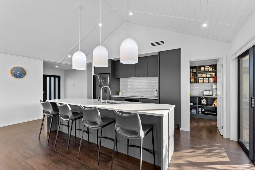 At the heart of the home is a modern open-plan kitchen, beautifully appointed with quality appliances, stylish cabinetry, and the added convenience of a walk-in pantry-perfect for everyday living and entertaining alike. A separate lounge adds further appeal.
