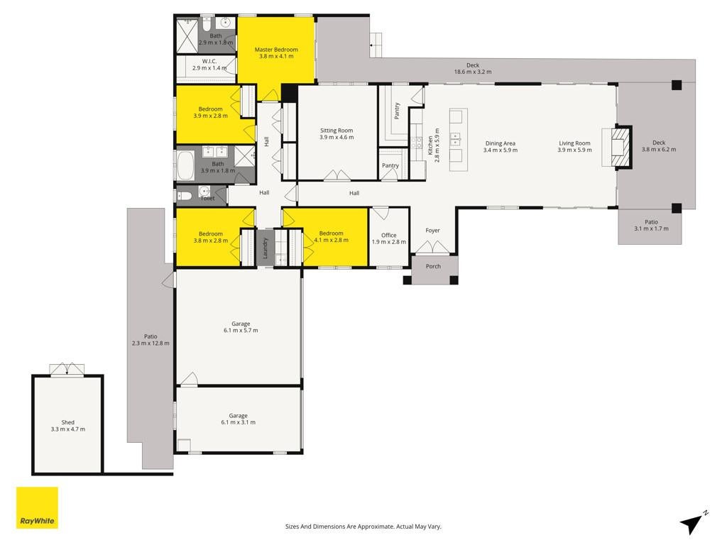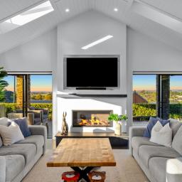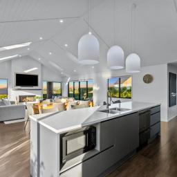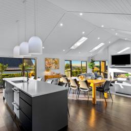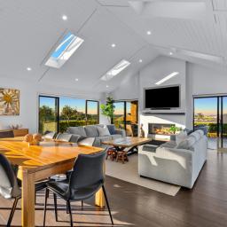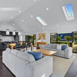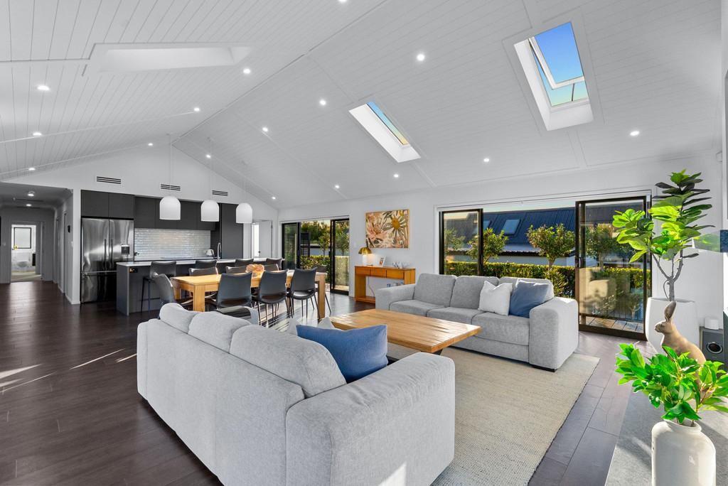 Step inside and you are instantly greeted by striking raked ceilings complemented by four skylights, creating a wonderful sense of space and natural light. Multiple ranch sliders open from the living areas, seamlessly connecting the indoors to the outdoors while capturing the sunny northern aspect.