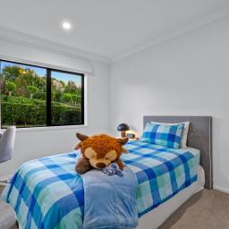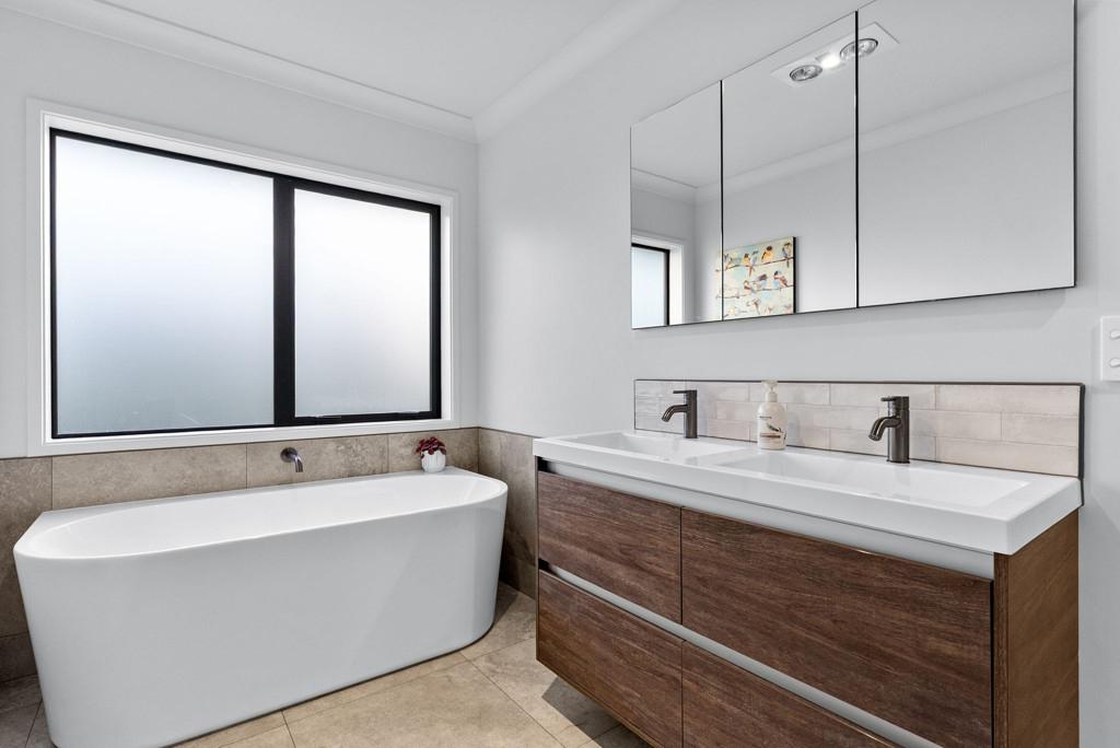 The home offers four well-proportioned bedrooms. Three double bedrooms are serviced by a fully tiled family bathroom and separate toilet, while the master suite provides a peaceful retreat featuring a walk-in wardrobe, tiled ensuite, and ranch slider opening out to the deck.