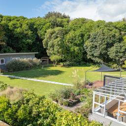 Set on a double section where part of a scenic reserve forms a natural extension of the property, it combines a four-bedroom, two-bathroom home on 2410 square metres* of fabulously flat lawn and ecological significance - complete with tawa and kohekohe - in a delightfully natural setting where the kids can kick a ball or ride their bikes around the garden.