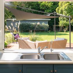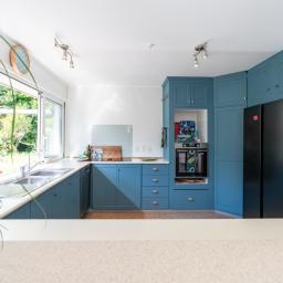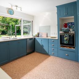 The house itself blends European-inspired interiors with practical family living. It's configured for everyone to have their own space or to gather, from the separate lounge to the inviting family/dining room with woodburner, through to the sunroom that opens onto a large alfresco deck connecting to the heritage-blue kitchen.