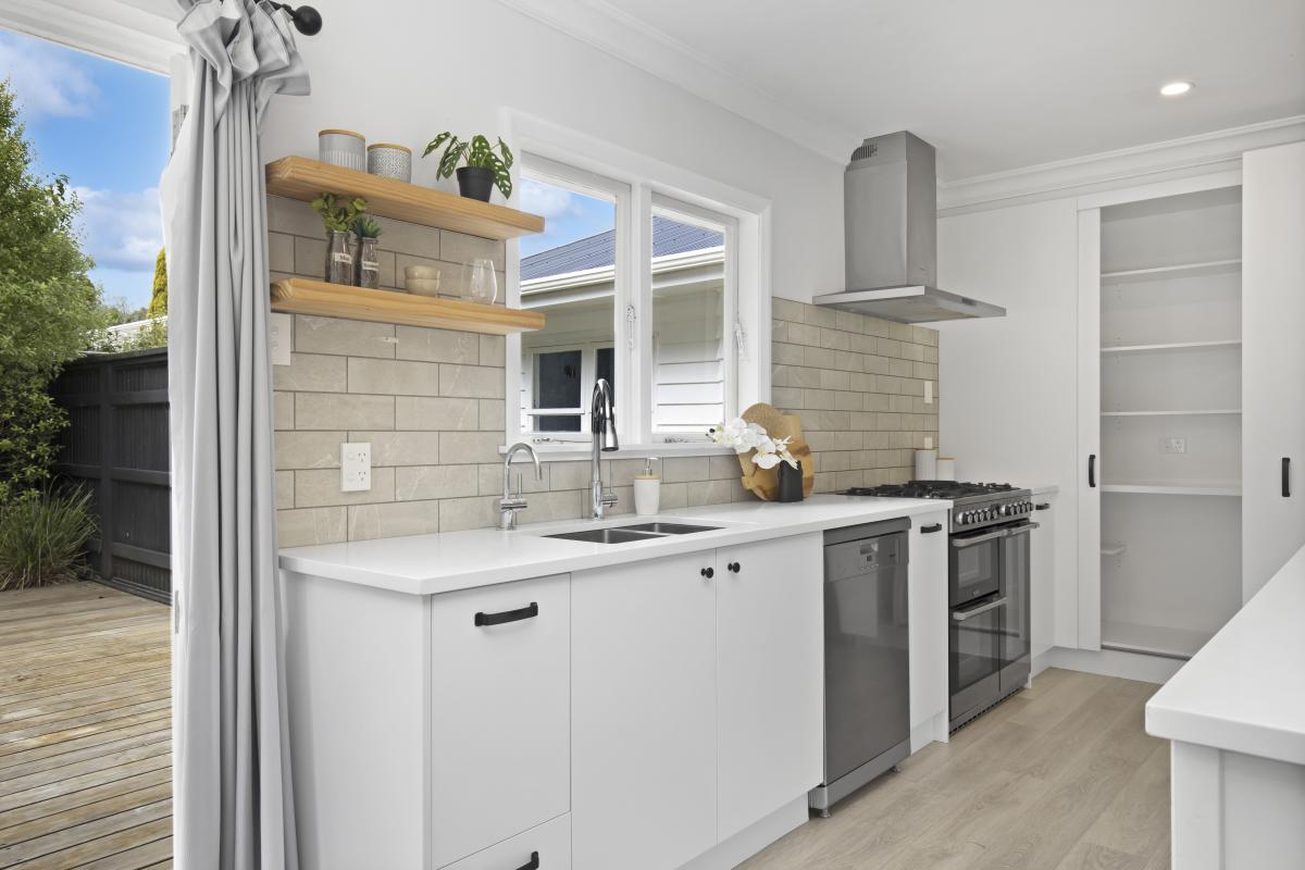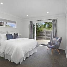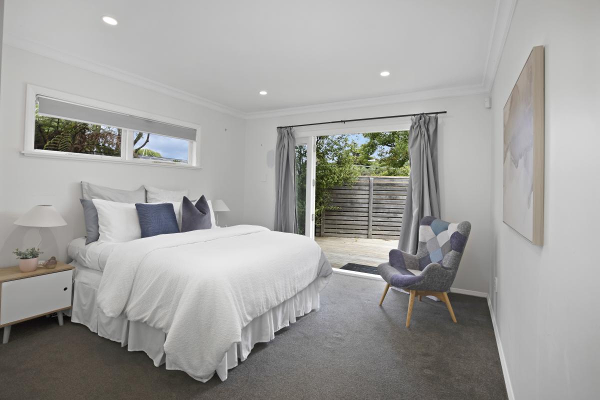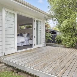 Kicking back, outdoors is easy with a covered patio, and wrap around decking that leads to the sunny lawn and gardens backing on to the Russell Reserve, where the song of the Tui and beat of the Kereru fill the air.