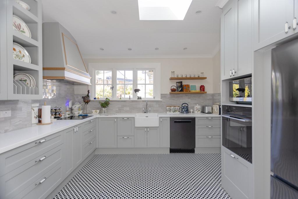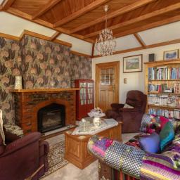 Two inviting lounges feature original brick surrounds with gas fire inserts, creating warm and intimate living spaces. The fully updated shaker-style kitchen is a standout, featuring Kymira benchtops, a fitted butler sink, and quality Bosch and Fisher & Paykel appliances.