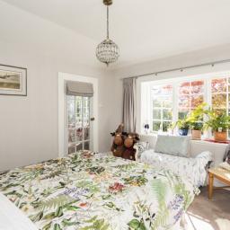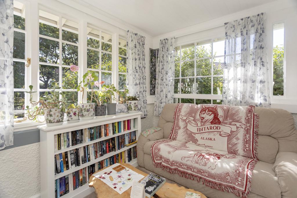 Three double bedrooms include one with double-glazed cedar doors opening to the backyard, and another with an adjoining sunroom ideal as a private retreat. The tiled bathroom is elegantly appointed with Perrin & Rowe fittings, while a second shower and toilet are conveniently located within the stylish country-style laundry.