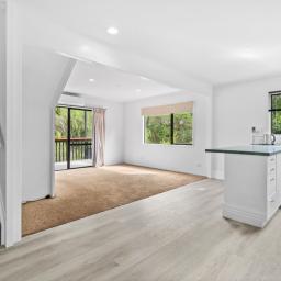 • Outdoor Access: The living area opens onto the elevated deck, perfect for relaxing while overlooking the green belt. Stairs led from the deck to the small lawned area at the front and added the bonus of a small outdoor area at the back.