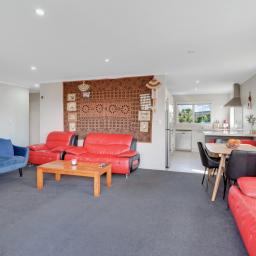 At the heart of the home is a large open plan, North facing living area that captures all day sun and creates a warm, welcoming space to relax or entertain. The layout flows effortlessly, providing flexibility for families, professionals or tenants alike. Double glazed aluminium joinery enhances comfort year round, helping to keep the home quiet, warm and energy efficient.
