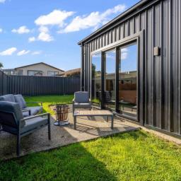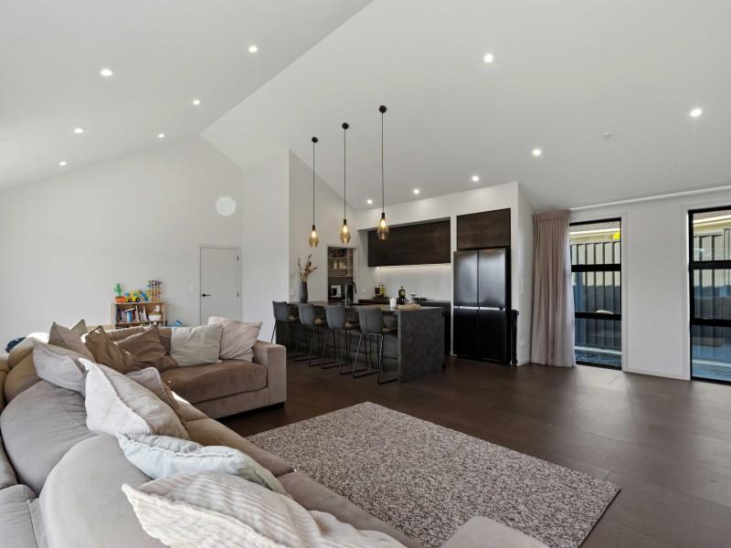 Step into modern living at its finest with this stunning 2024-built home, where thoughtful design meets everyday comfort. Set on a 466m² partially fenced section, this 186m² residence showcases striking corrugate cladding and soaring cathedral ceilings that create an immediate sense of space and style.