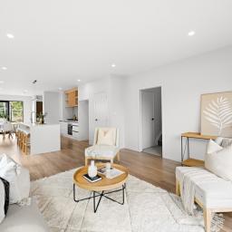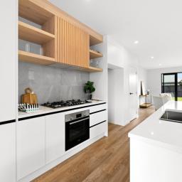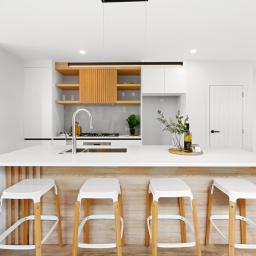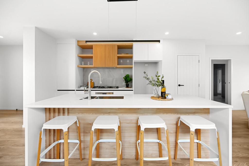 The high stud accentuates the feeling of space and enhances the fantastic open-plan living area which seamlessly connects to multiple outdoor entertaining zones. The designer kitchen is a true highlight, showcasing an engineered stone island, premium Bosch appliances, and a must-have scullery-plenty of room for the family chef to get creative. A separate snug area or dining space offers flexibility for relaxation or gatherings. Work from home will be a breeze with the dedicated office nook.