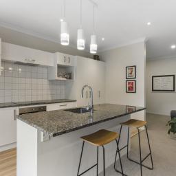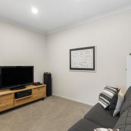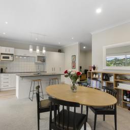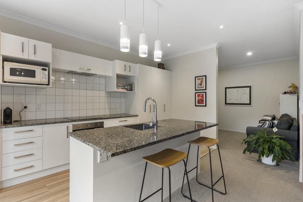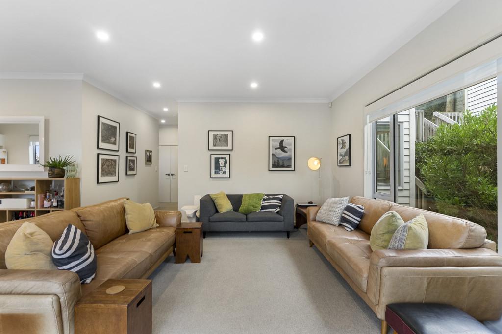 Fee simple and on its own title, it features a smartly designed kitchen and open-plan living and dining that flows seamlessly to a sun-drenched deck with a lovely green outlook. There is also a separate media room, three generous bedrooms, including a master with ensuite, plus a family bathroom.