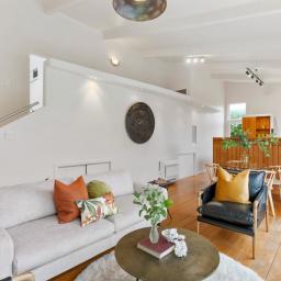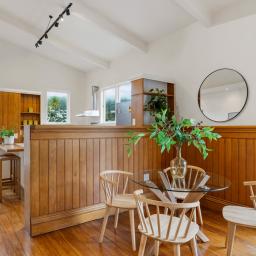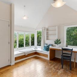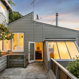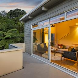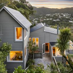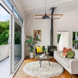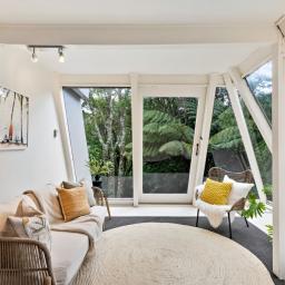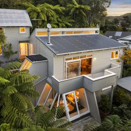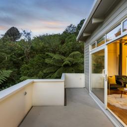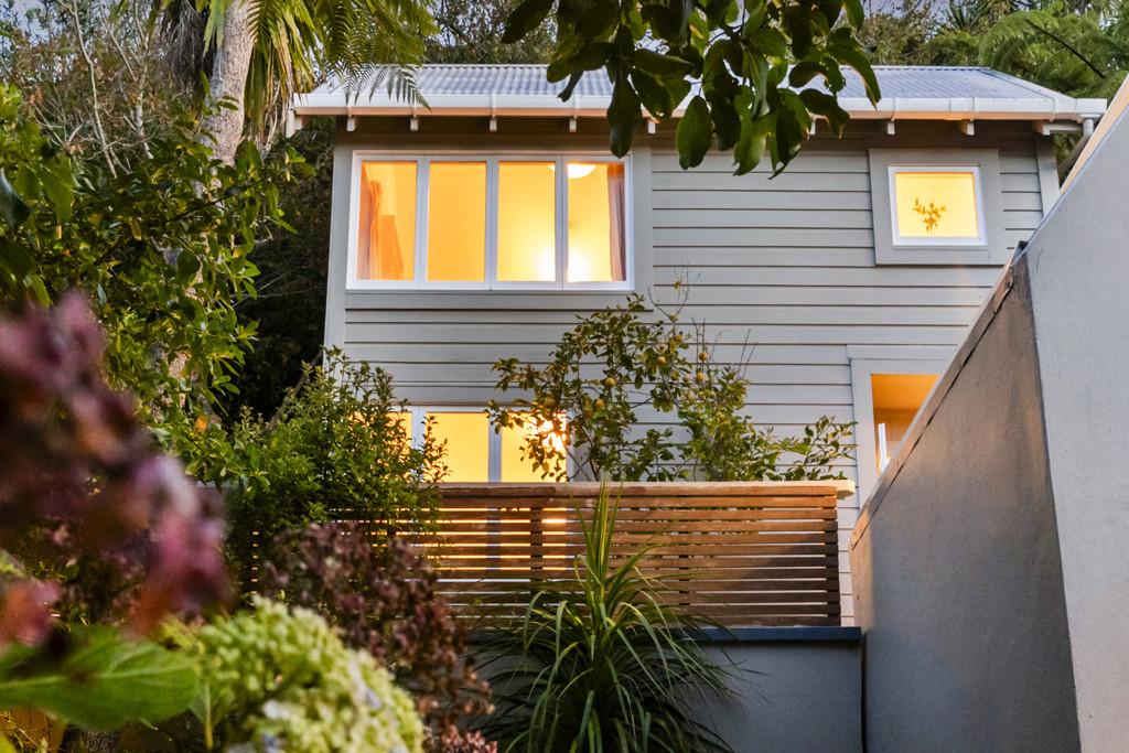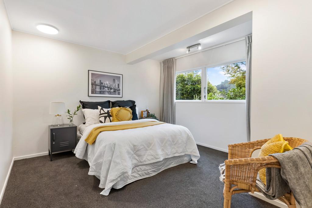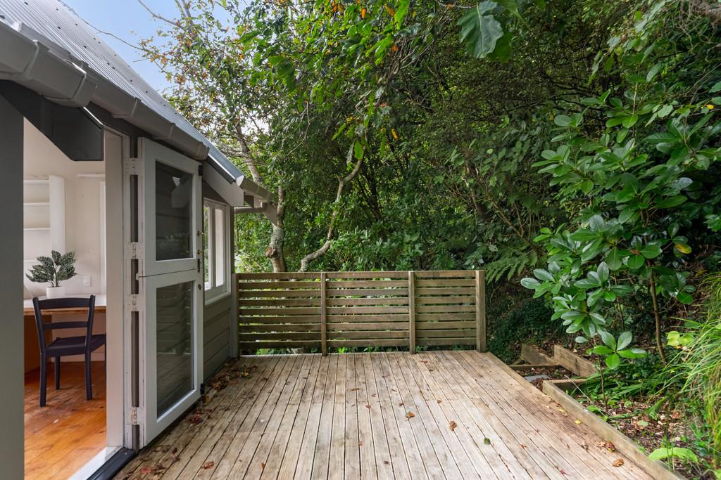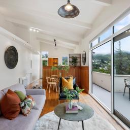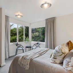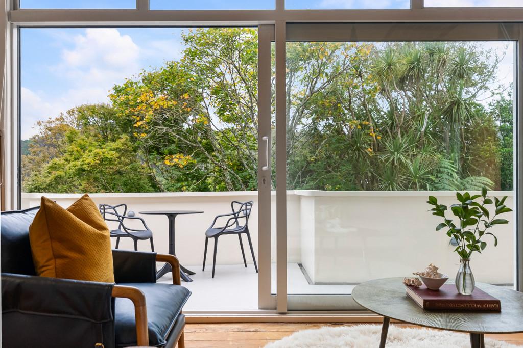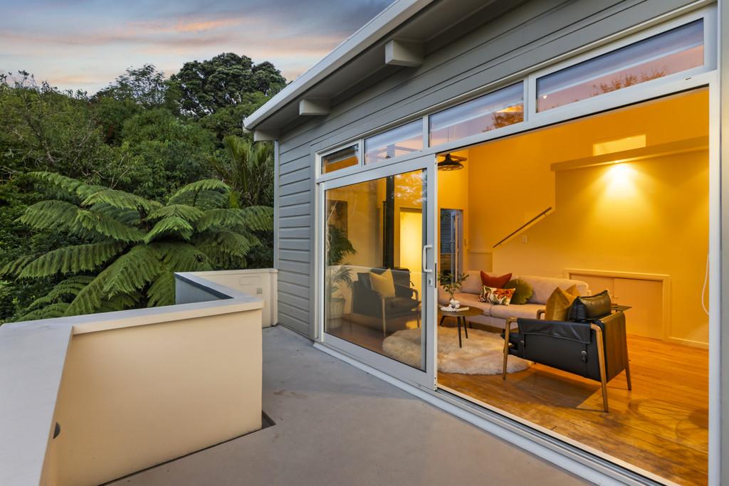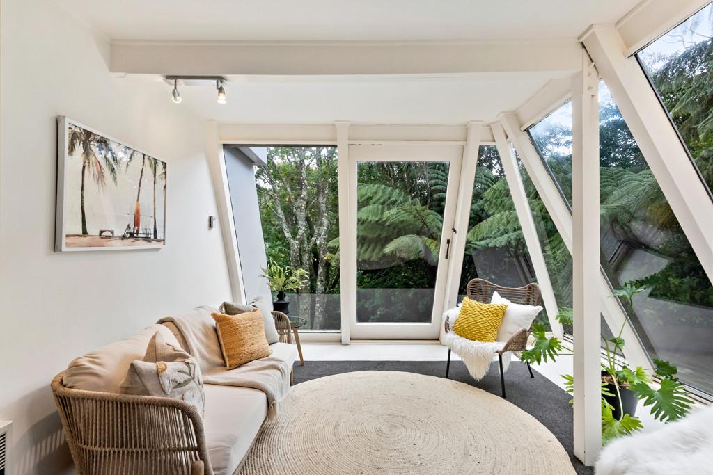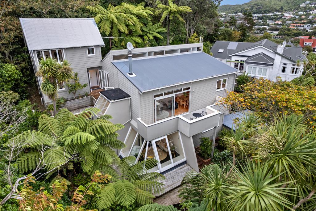 Tucked up a private drive, elevated and surrounded by native bush and birdsong, this 1970s home feels like a quiet retreat from the world while still being right in the heart of Karori. Set within its own sunny, sheltered microclimate, it's filled with natural light and leafy outlooks toward Makara Peak.