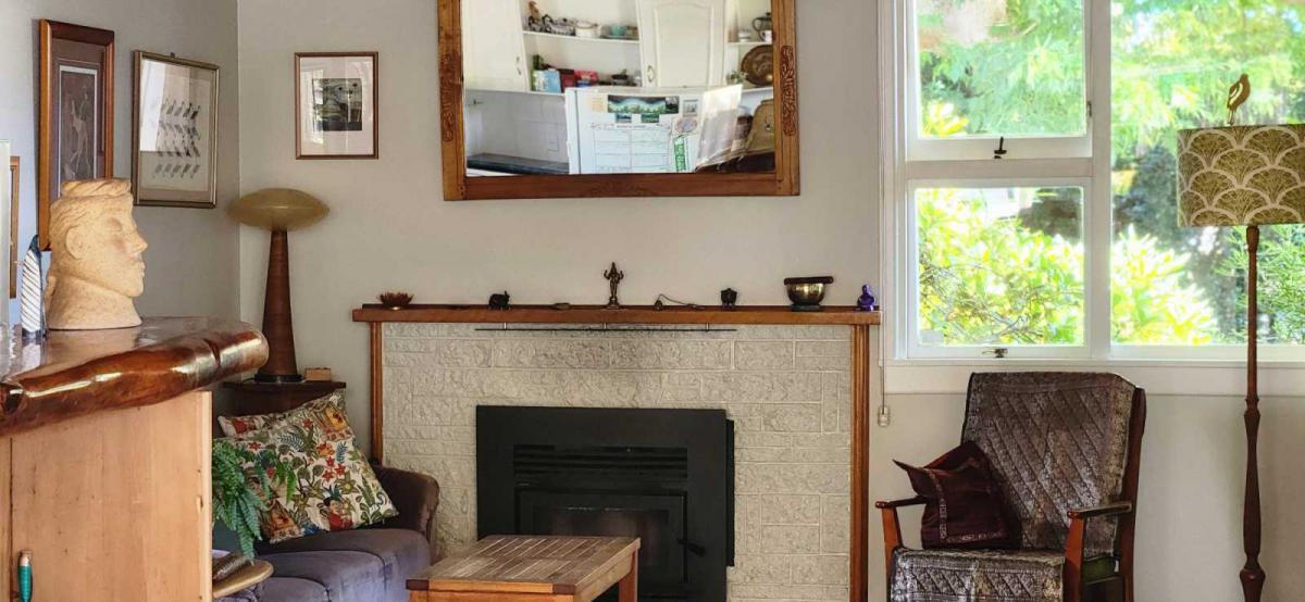 Inside, a warm and tidy interior invites easy living, with both a fire and heat pump providing year-round comfort. A place of light, charm, and quiet retreat — step inside and feel instantly at home.