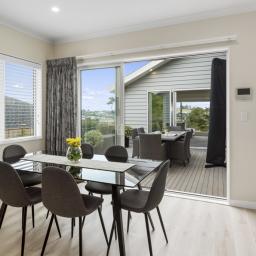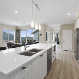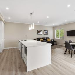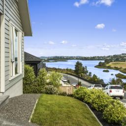 Offering a large separate lounge near entry, great for relaxing and looking out to the estuary, or socialising with friends. Continue walking through the home down a wide passageway, leading to the designer kitchen with an extra large kitchen island. All the details have been thought of here, from the SMEG oven offering 2 cooking compartments to lots of storage space! Here you will also find another living/dining space, wall hung TV included.