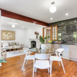 Warm native timber flooring, a classic fireplace with mantel, and charming details celebrate the home's heritage. These are seamlessly complemented by contemporary upgrades, including a striking modern kitchen with engineered stone benchtops and an illuminated bar feature - ideal for entertaining.