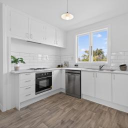 Step inside to light-filled living, complemented by a modern kitchen designed for easy everyday living and entertaining. Three bedrooms are served by a family bathroom with shower over bath, while a separate laundry and heat pump add practicality and year-round comfort.