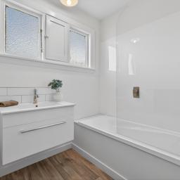 - Family bathroom with shower over bath
