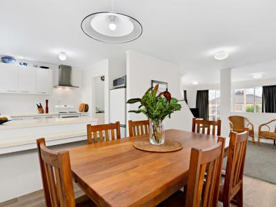 The heart of the home is the light-filled open-plan living, dining and kitchen area, designed for easy everyday living. From here, doors open to a generous north-facing deck, drenched in sun and perfect for entertaining friends or enjoying a quiet morning coffee.