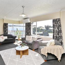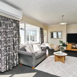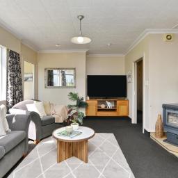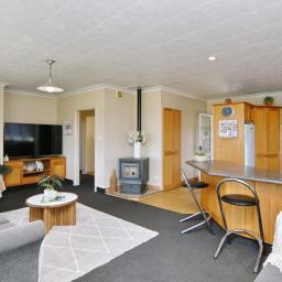 The home provides three bedrooms or two plus a study or sunroom, a wet-floor bathroom, a great open-plan kitchen and living room with pellet fire and heatpump, a conservatory and a separate toilet and laundry.