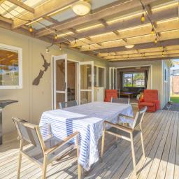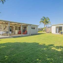 A separate sleepout adds extra flexibility for guests, teenagers, or extended family. Two garden sheds provide excellent storage for beach gear, tools, or holiday essentials.
