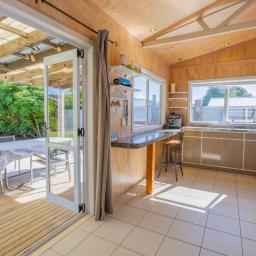 Set on a private freehold 572m² rear section, the property enjoys a sunny north-facing aspect and a wonderful sense of seclusion. The fully fenced property provides plenty of room for children and pets to play, while there’s also space for tents, visiting friends, or simply spreading out and enjoying the sun.