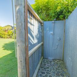 There’s even the luxury of an outdoor bath and shower with hot and cold water; perfect after a day at the beach.