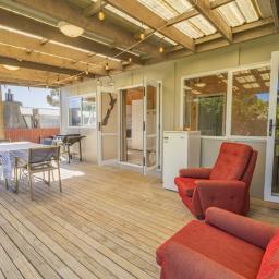 The well-appointed kitchen includes a breakfast bar and a practical pass through window that connects to the deck, ideal for entertaining. The master bedroom features a spacious built-in wardrobe, while the bathroom offers a shower, with a separate WC and a combined laundry for everyday convenience.